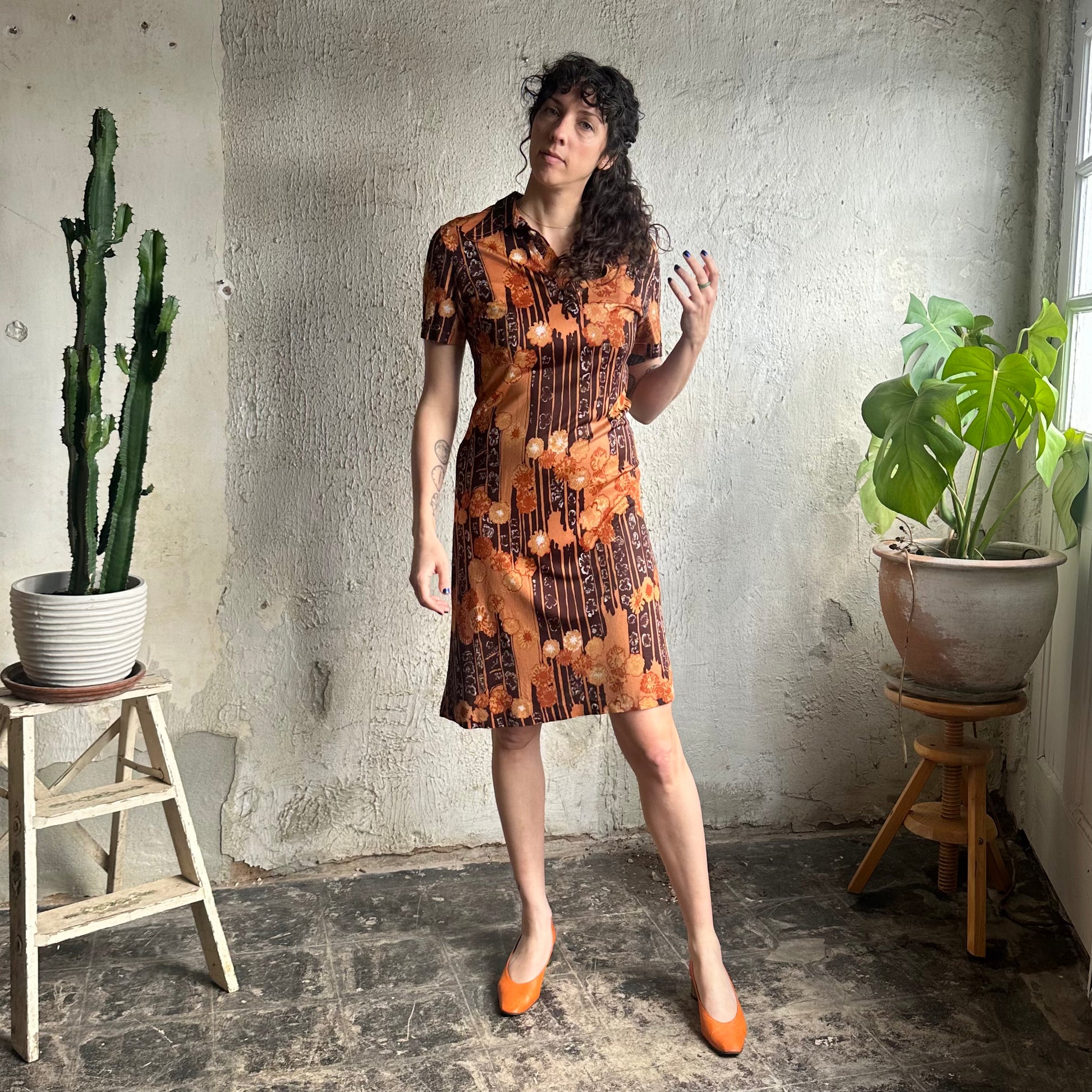 1970’s Burnt Orange Brown Dress Found in Italy S
